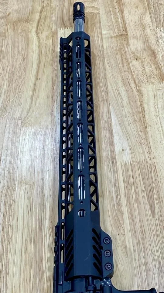 The 18'" AR-15 is chambered in 223 Wylde. Stainless barrel. Magpul CTR stock. Magpul lightweight M-LOK upper rail. Magpul soft pistol grip, Nickle Boran bolt, Enhanced Polished Trigger, Magpul 30rd mag.